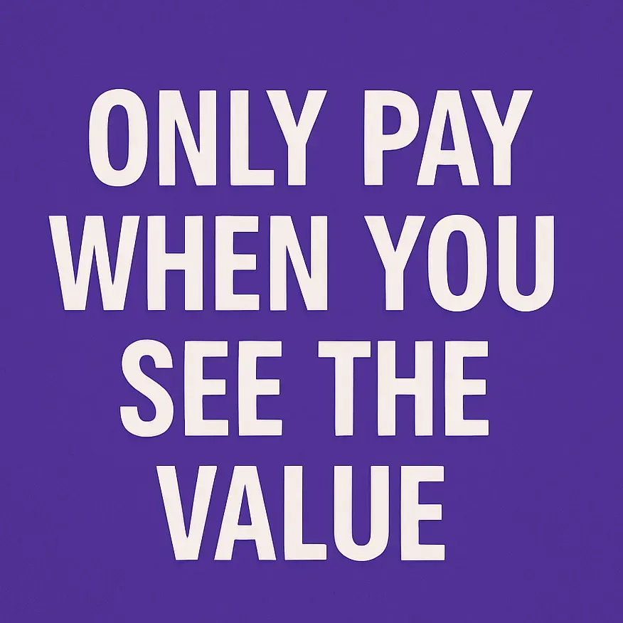 🛡️ Backed by the “Only Pay when you see the value” Guarantee.